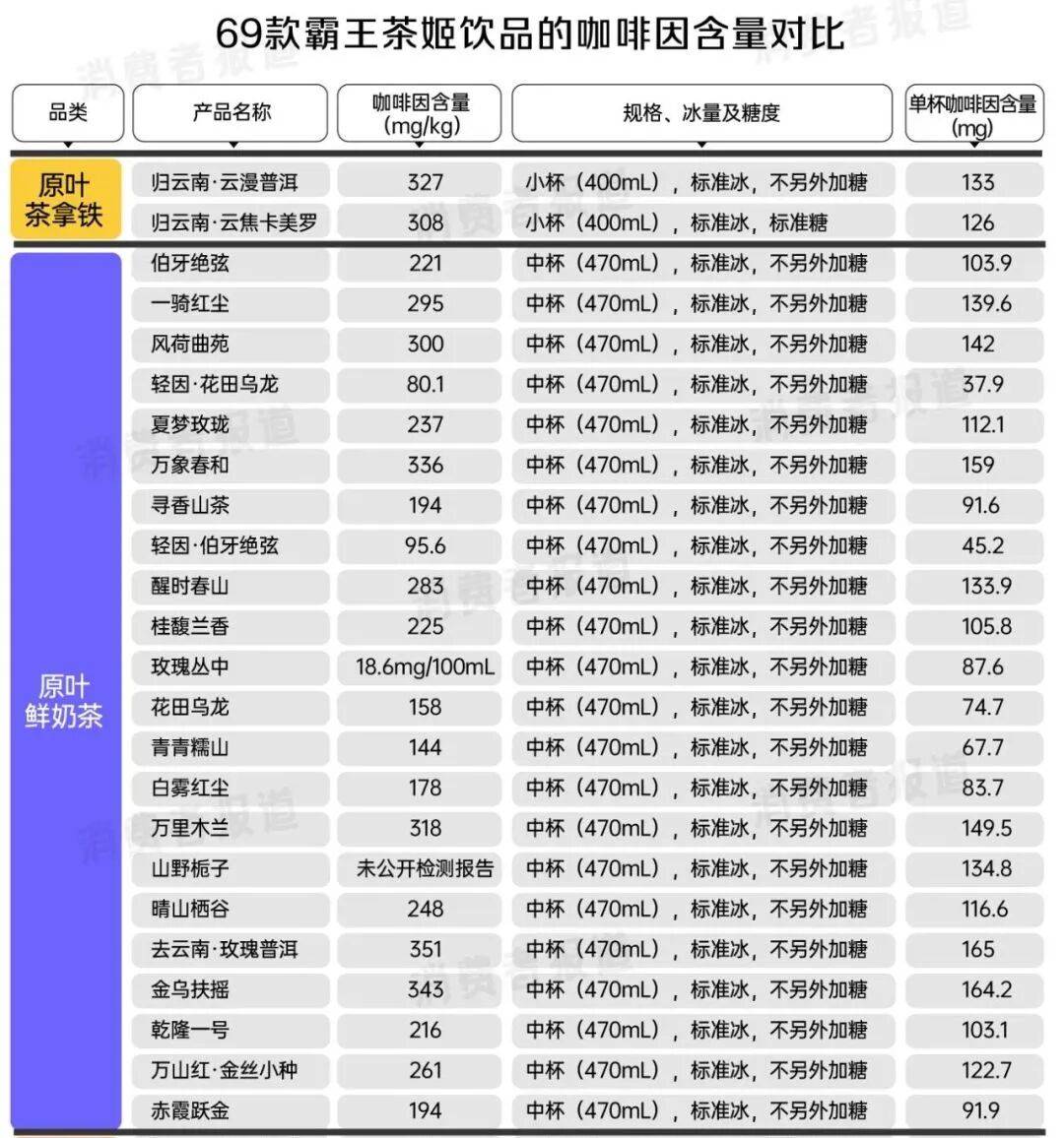 国信证券认为:将来的赢家,将是那些通过产物持续立异取供应链成本优化,切实保障加盟商投资能正在合理周期内不变收受接管的头部企业。[1]“伯牙绝弦”“万里木兰”因高浓度茶多酚,被网友讥讽为“睡眠刺客”,“下战书三点万里木兰,凌晨三点替父从军”。此次,一位知乎网友更是给霸王茶姬扣上了沉沉的帽子,惹起发急。以致于深圳卫健委等机构,都亲身。据《消费者报道》检测计较,中杯470mL、茶喷鼻款的“伯牙绝弦”的咖啡因含量约为103。9mg,同规格的“一骑”的咖啡因含量约为139。6mg,“万里木兰”的咖啡因含量约为149。5mg。[2]一罐250mL红牛的咖啡因含量约为50mg。据此计较,喝一杯中杯“万里木兰”约等于喝3罐红牛。