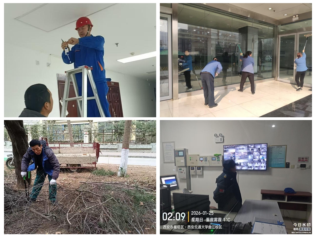 物业办事核心聚焦沉点使命,统筹摆设、高效推进各项工做。逐间查抄离校学生卧室断水断电、公寓门窗、水电开关、热水器等设备封闭环境;制定寒假平安应急预案,实行24小时轮班值守轨制,组织人员培训;查抄各楼公共区域照明设备及时维修;维修公寓楼内楼梯踏步等问题;各公寓每日两次对各楼层进行平安巡视;每日对公寓公共区域进行清扫和拖拭,每周对公寓公共区域、卫生间、垃圾坐等全面消杀;安设假期临住学生;开学前一周对公寓进行全面卫生洁净、消杀和设备复检,确保学生返校后一般入住。楼宇部对藏书楼、体裁核心、仲英楼、七彩阁、西二楼、多教室等开展平安现患大排查;对61部电梯运转形态、维保台账、轨制办理等进行沉点查抄;对讲授楼空调机组进行巡检维保;清洗拾掇2025年冬季学位授予典礼发放的学位服;对藏书楼、北二楼等人员稠密场合做消防逃生技术培训;更新中二楼、中三楼多教室设备。修剪兴庆校区及家眷区内乔木528株;对东区浴室门口女贞树进行拦头修剪30余株;大门吊挂春节粉饰灯笼;做好绿化动物的病虫害防止工做,完成校园从干道道冲刷和根本设备清扫保洁。社区取物业办事部持续打点2026年度交大兴庆家眷区车辆通行授权;加强兴庆家眷区门禁办理、沉点区域巡查等工做;针对交大兴庆家眷区沉点公共区域和楼宇消防平安等进行平安排查;对家眷区电梯设备、立体车库设备和道闸、外和楼宇保洁等工做加强放哨;各大门处挂大红灯笼、灯杆挂中国结;严酷施行发卖燃放烟花爆仗要求。