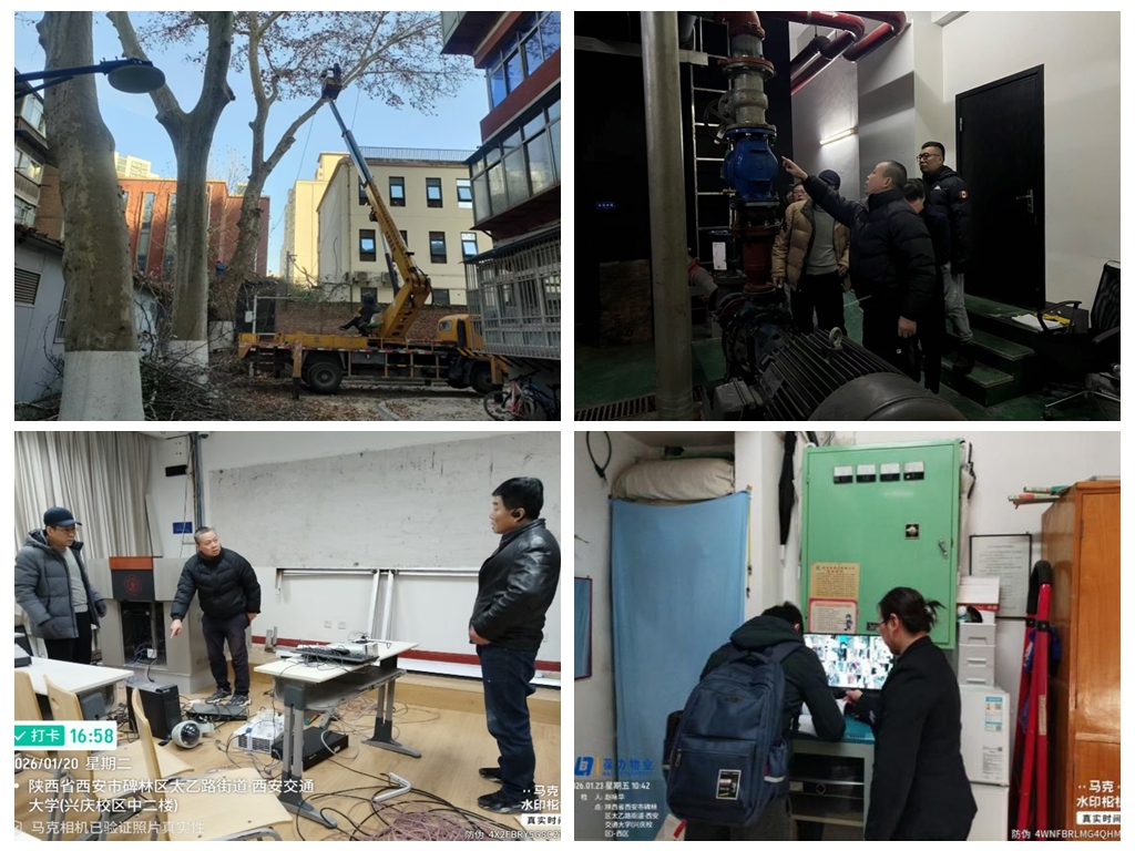 曲江校区办理办公室严酷落实学校寒假工做摆设要求,全面启动假期办事保障机制,做好平安放哨排查、设备设备巡检、整治、应急值守摆设、冬季植被绿化养护等沉点工做,确保校内各类设备设备运转一般,校区运转平稳有序。建牢平安防控系统,守好校园第一道防地:收支办理规范化,严酷施行门岗24小时值守轨制;全域放哨无死角,采用定点值守取动态巡查相连系模式联防联治;消防设备全检测,共同消防维保单元对校区消防系统开展排查。检修设备设备,保障运转不变:加大校区水电暖设备巡检力度,每天按时对配电室、水泵房、汽锅房等沉点部位进行放哨,及时发觉并处置各类毛病现患; 应急保障提前摆设,完美雨雪、寒流气候预案,确保应急物资充脚到位。推进整治,营制干净校园空气:冲刷门厅、地垫,对公共区域死角做好洁净,连结校园整洁。办事留校师生,全力暖心护航:快速响应师生征询、报修等事项;糊口办事有保障:供暖、浴室、开水一般运转,购电充值一般进行。绿化养护工做,清理景园和西二楼北花圃道积雪,清理绿化区落叶,整形修剪西五楼北侧树木,连结区域整洁美妙。