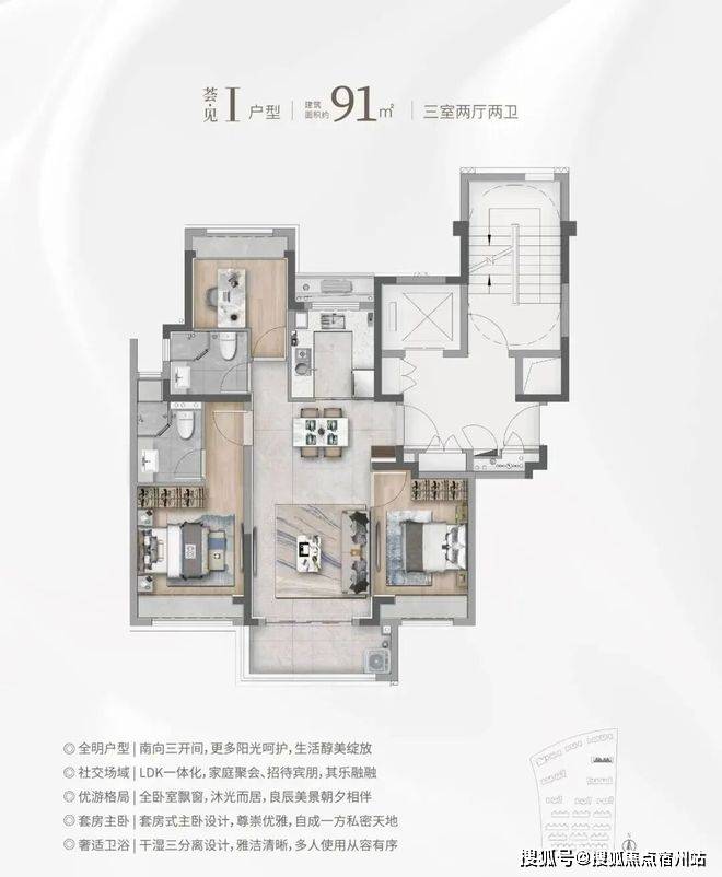 款式上也无可挑剔,三开间朝南的飞机户型,通风度光结果俱佳!客餐厅厨一体化+大标准不雅景阳台,整个公区几乎没有面积华侈,将面积极致操纵!全卧室飘窗、U字型厨房设想,细节把控到位!